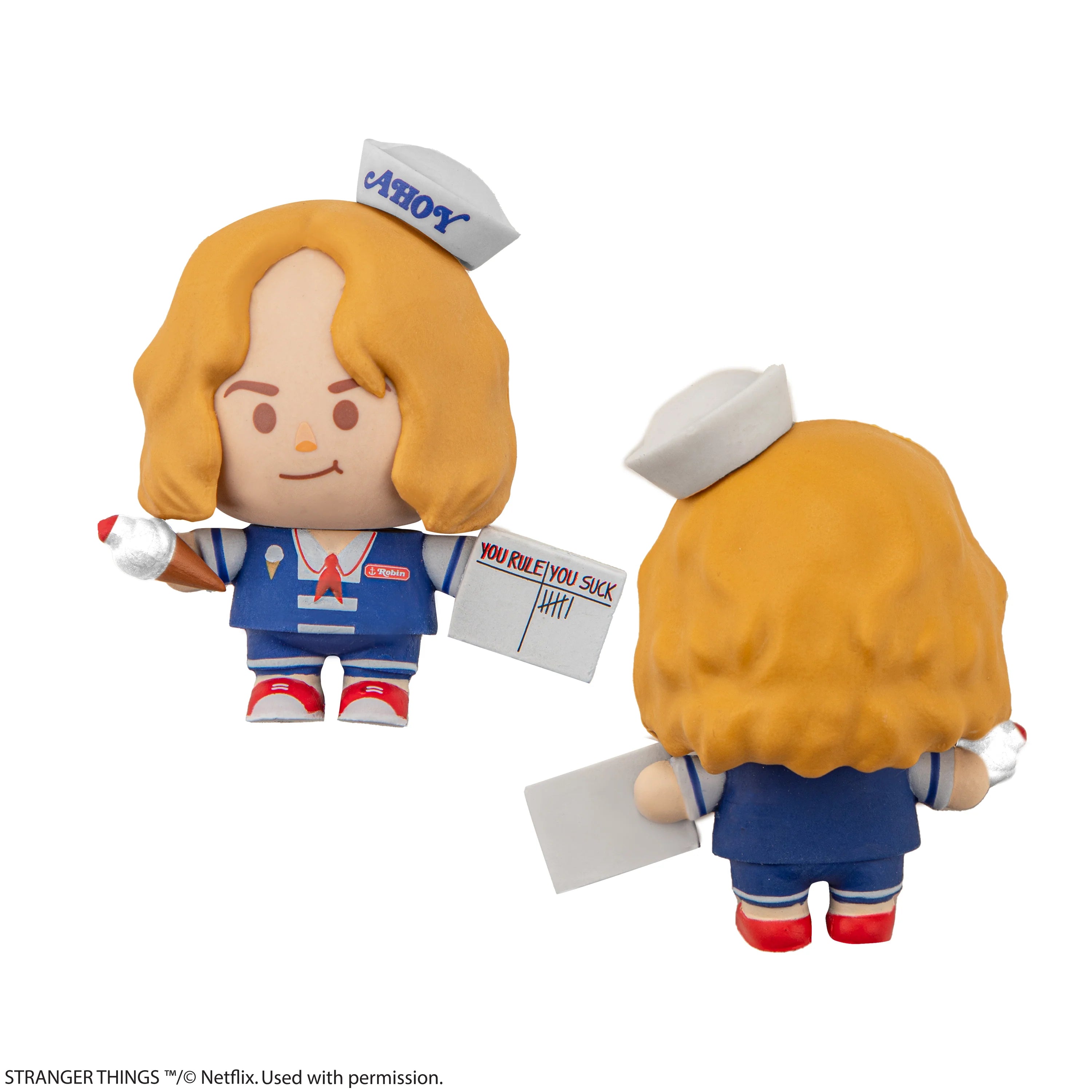 This Robin Scoops Ahoy Gomee captures her quirky charm and iconic retro Scoops Ahoy uniform that makes her instantly recognizable. Known for her wit, intelligence, and loyalty, she quickly became a fan favorite among Stranger Things fans. Complete with accessories like her "you rule, you suck" board, you can proudly display this with your growing Gomee collection!
