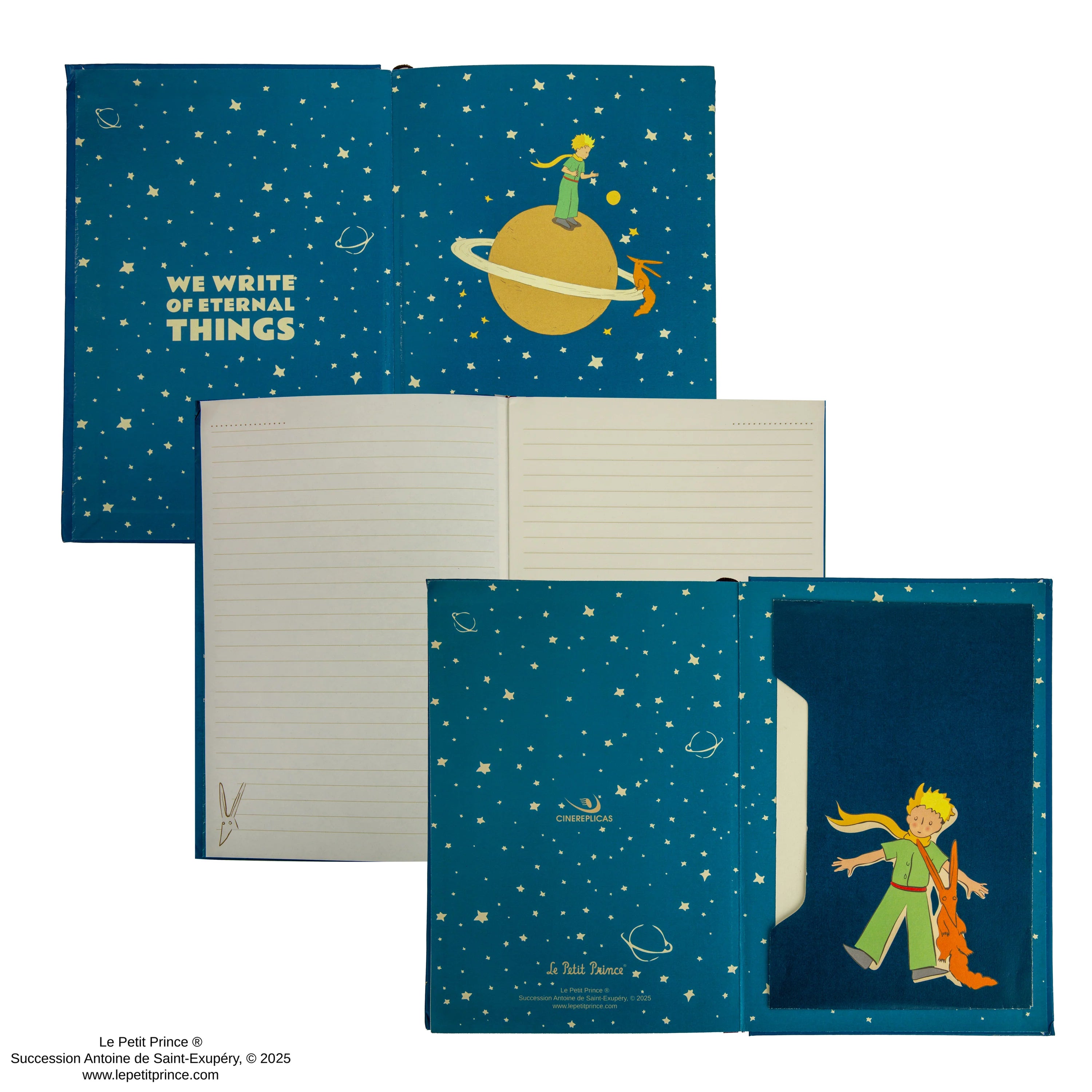 Inspired by the poetic universe of Le Petit Prince, this stationery set brings together three thoughtfully designed pieces into one gentle, star-filled experience. Dressed in beautiful teal and scattered with golden stars, each item feels like a quiet invitation to pause, reflect, and dream.