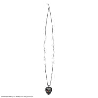 Show your love for Hawkins' favourite metalhead with our exclusive Eddie Munson guitar pick necklace! This unique accessory comes with three interchangeable guitar picks that fit perfectly inside the holder, letting you switch up your style whenever you want.