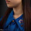 Presenting the Chocolate Frog Pin Set, a charming accessory that will captivate any enthusiast of the Wizarding World. This delightful set features two exquisite pins, one showcasing the iconic Chocolate Frog itself, while the other captures the magnificent purple and gold adorned box, as seen in the film.
